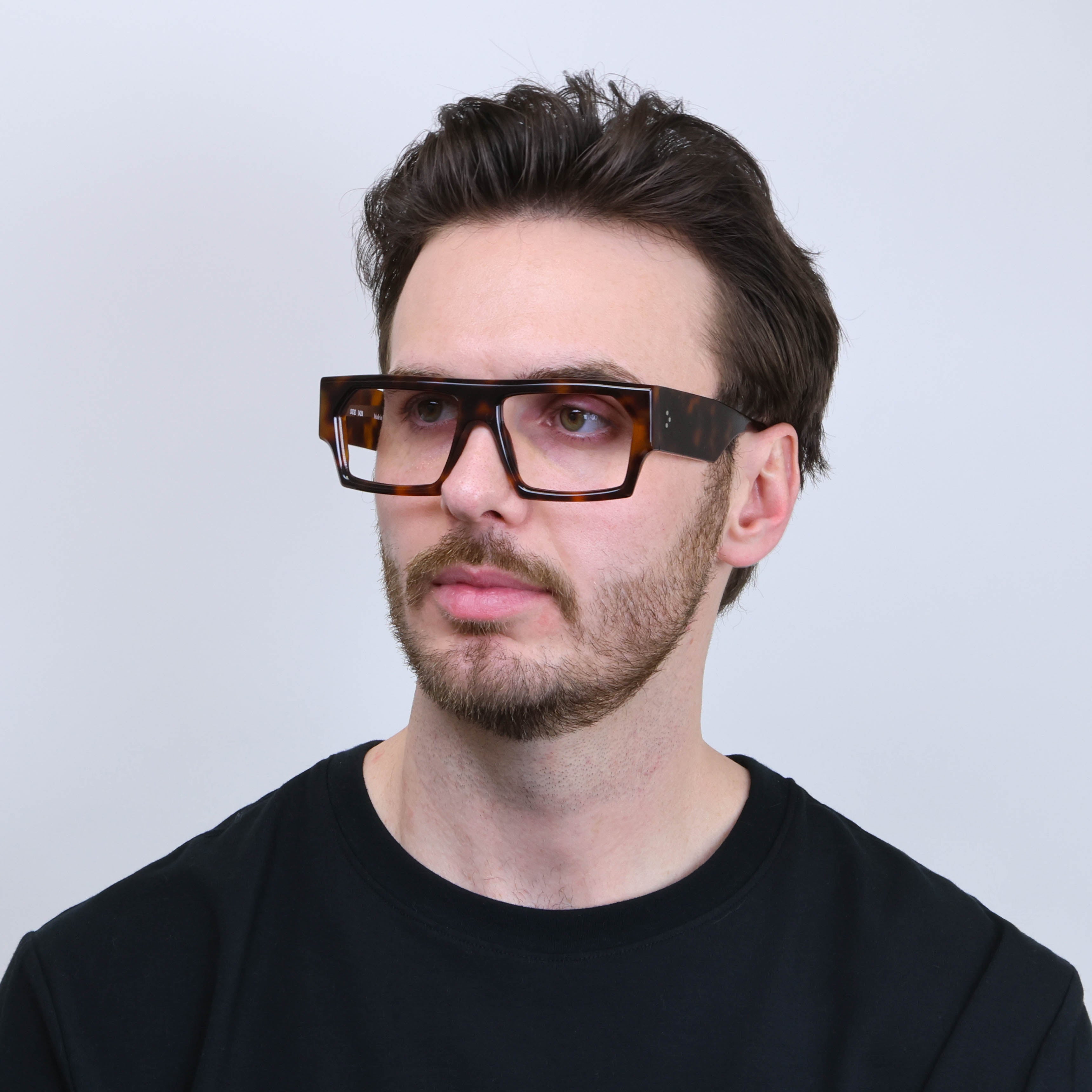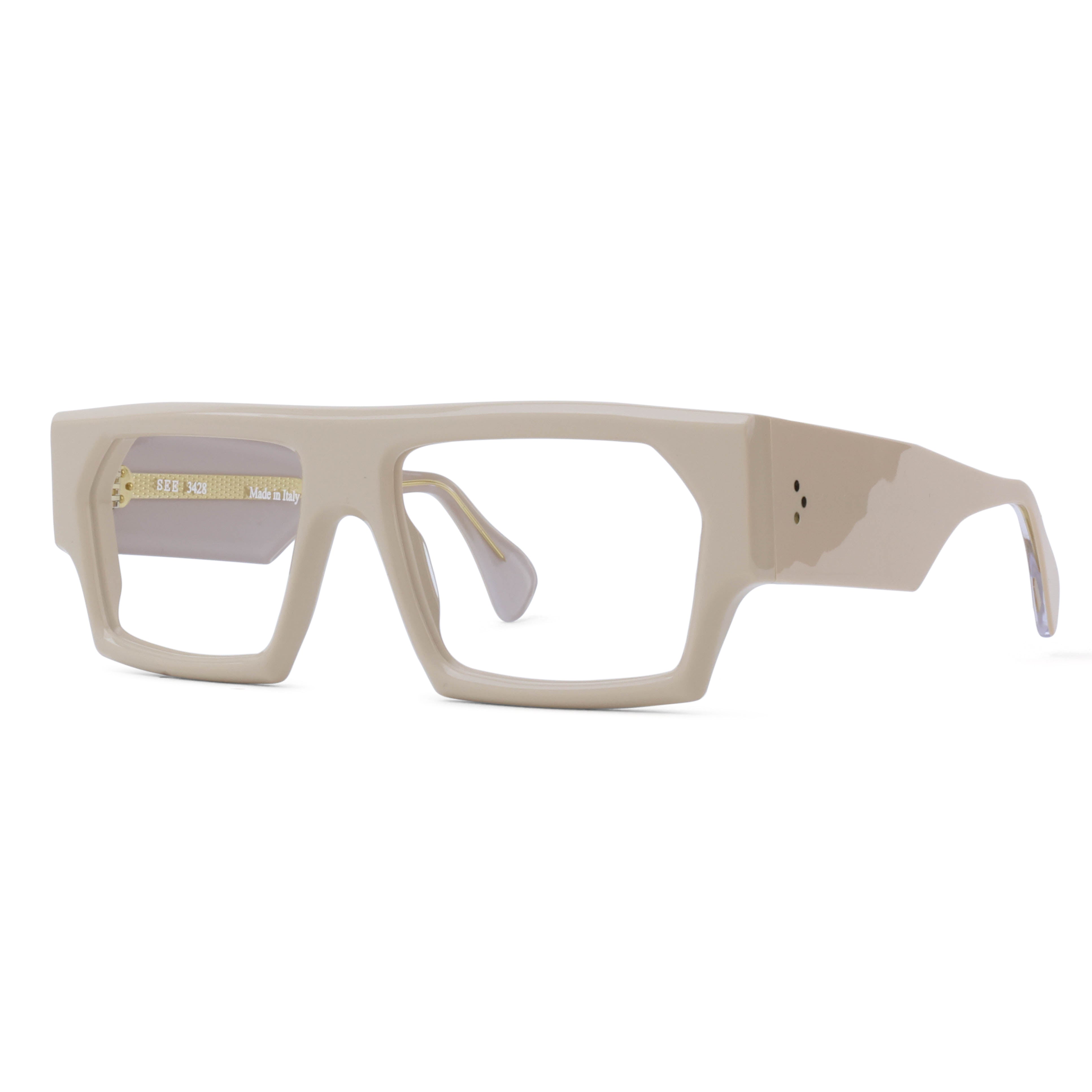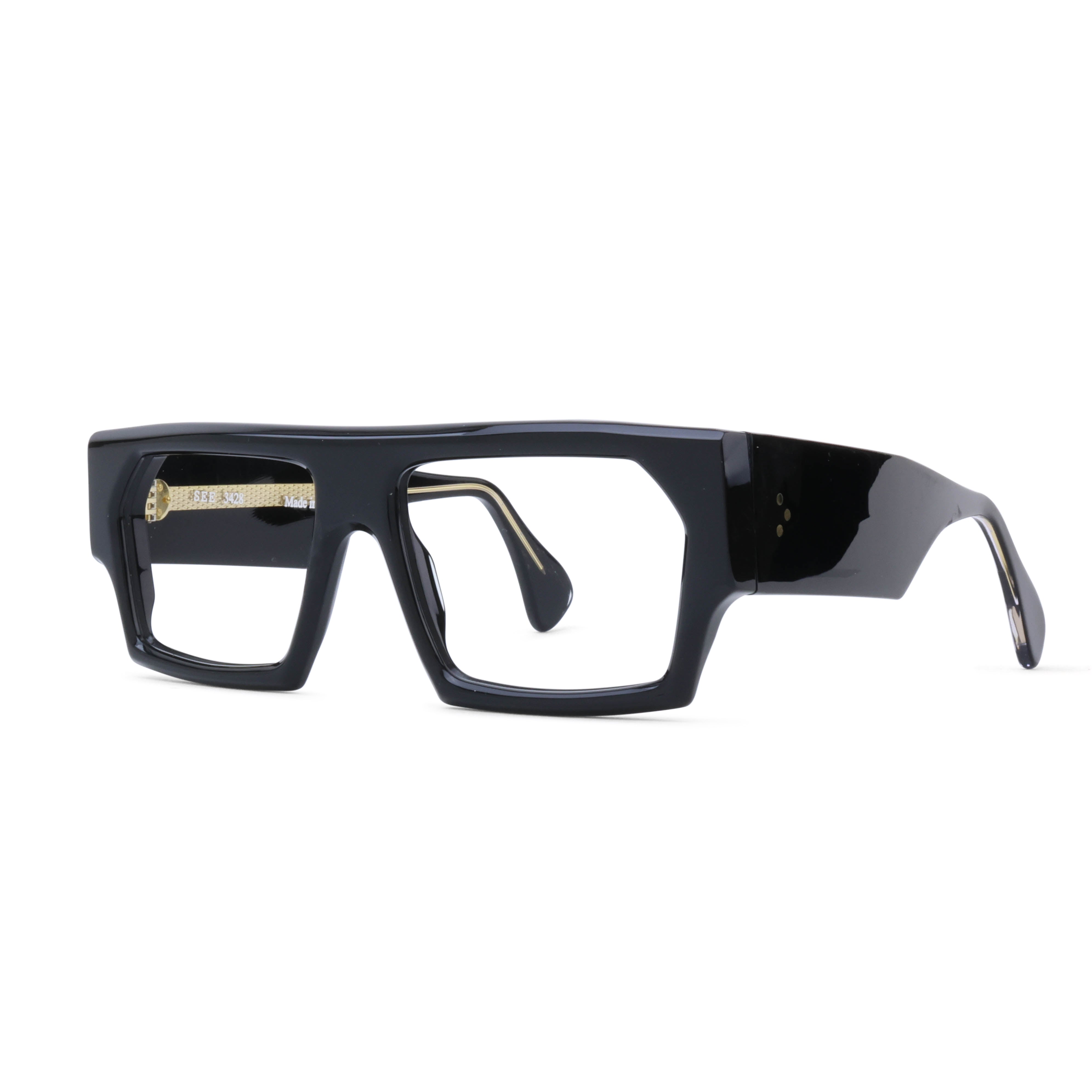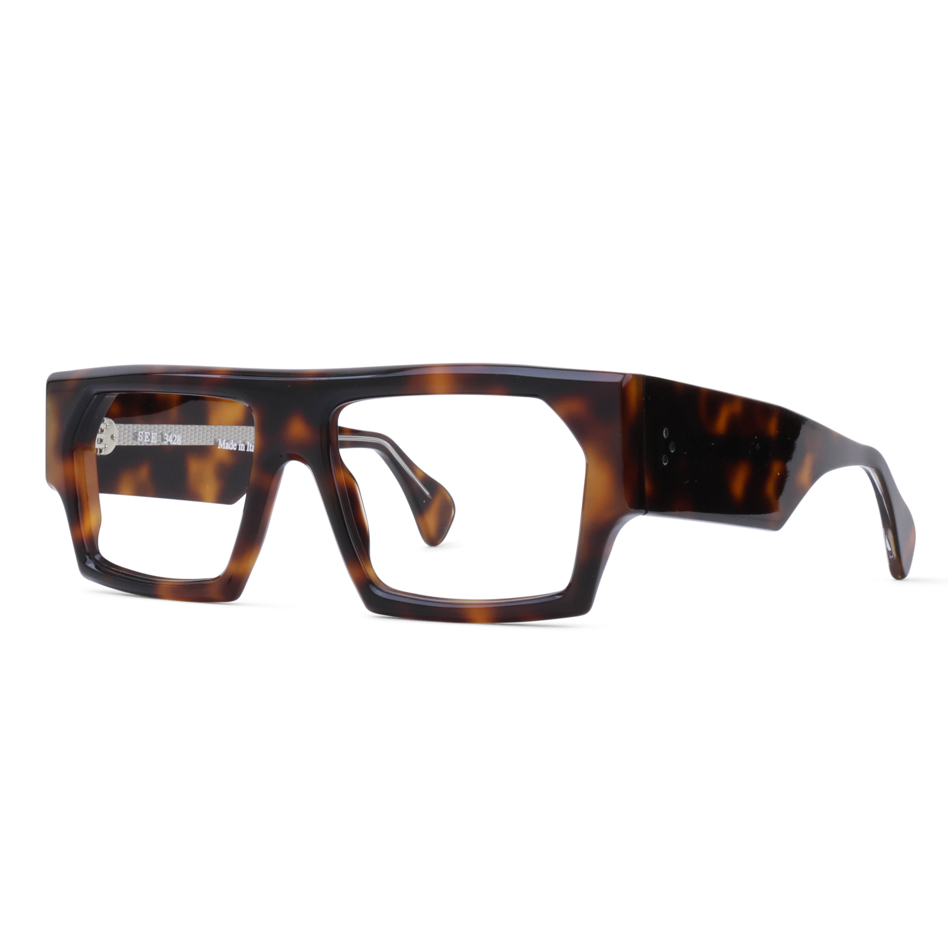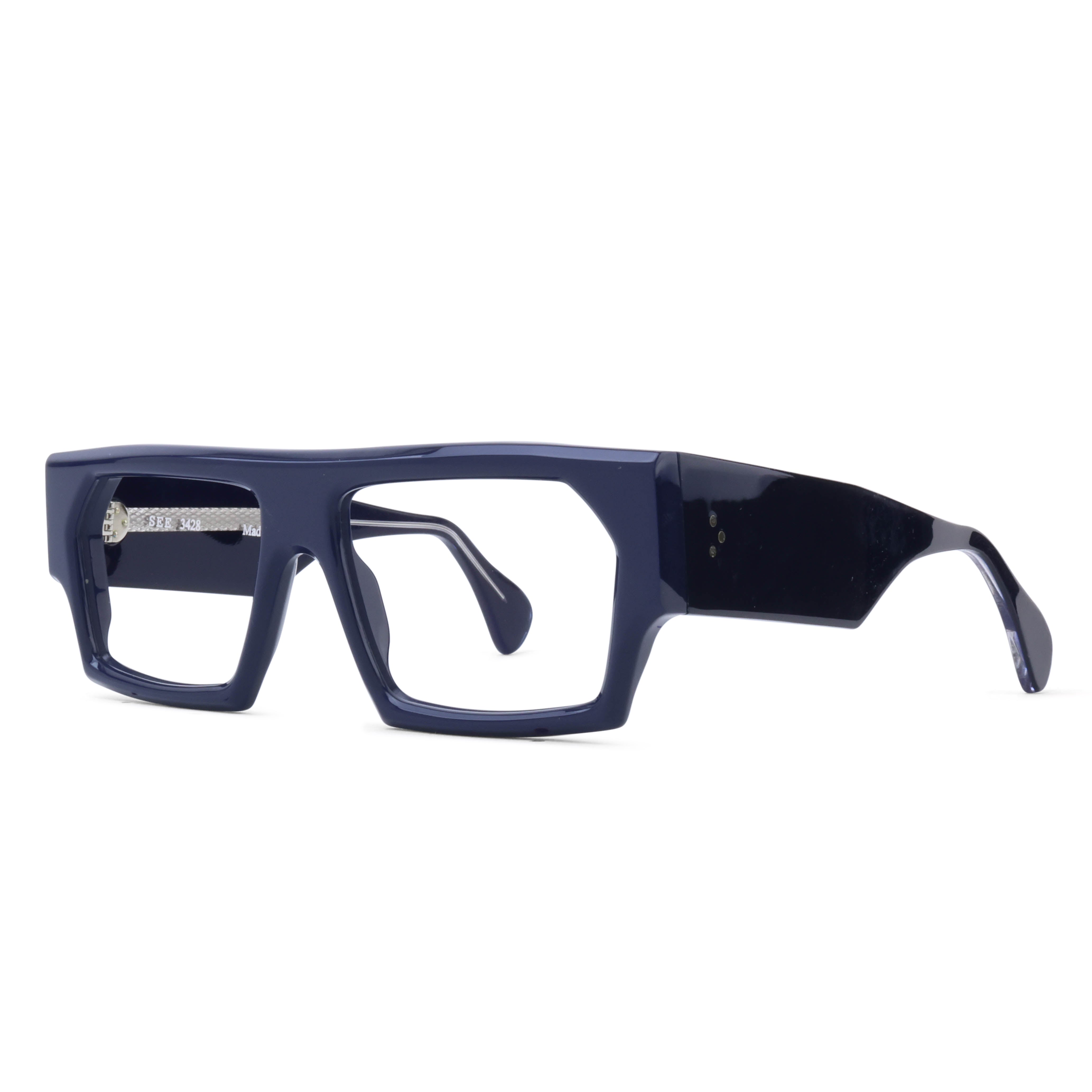 Feeling bold? Of course you are. SEE 3428 combines a chunky, flat-top shape with beefy temples and 7-barrel German hinges, all wrapped up in an artfully beveled, Italian-made package.