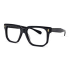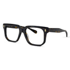 Classic at first glance, interesting up close. This square acetate frame pairs crisp lines with polished rivets and an angular lower eye wire for a look that’s subtle… but never boring. Effortless style with character.