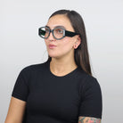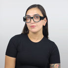 This Italian-made compliment-inducer flaunts a host of multi-finished looks on both the frame front and extra-wide, trendy temples. Those crafty artisans milled down sections of each frame to expose a second texture below. Lo adoro!