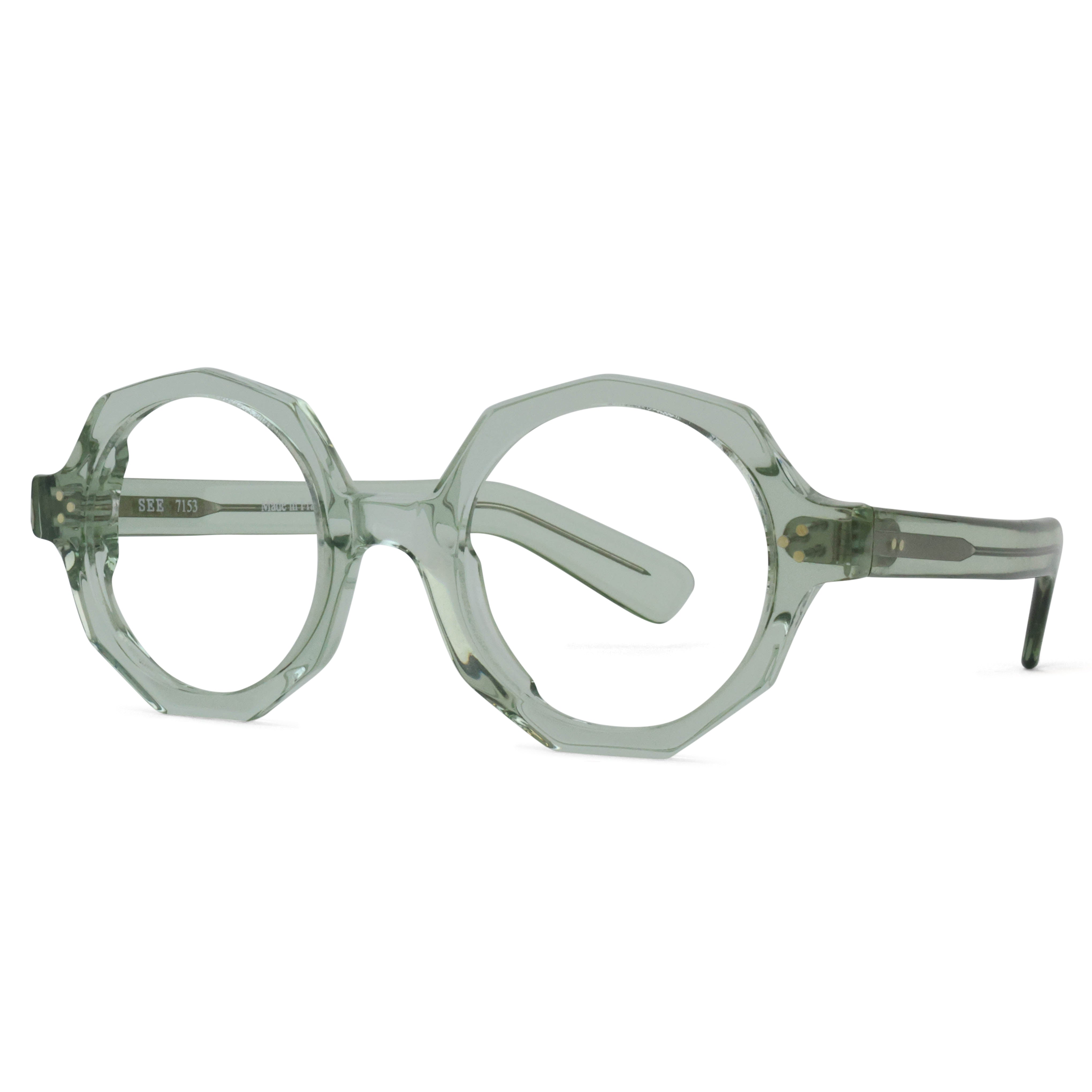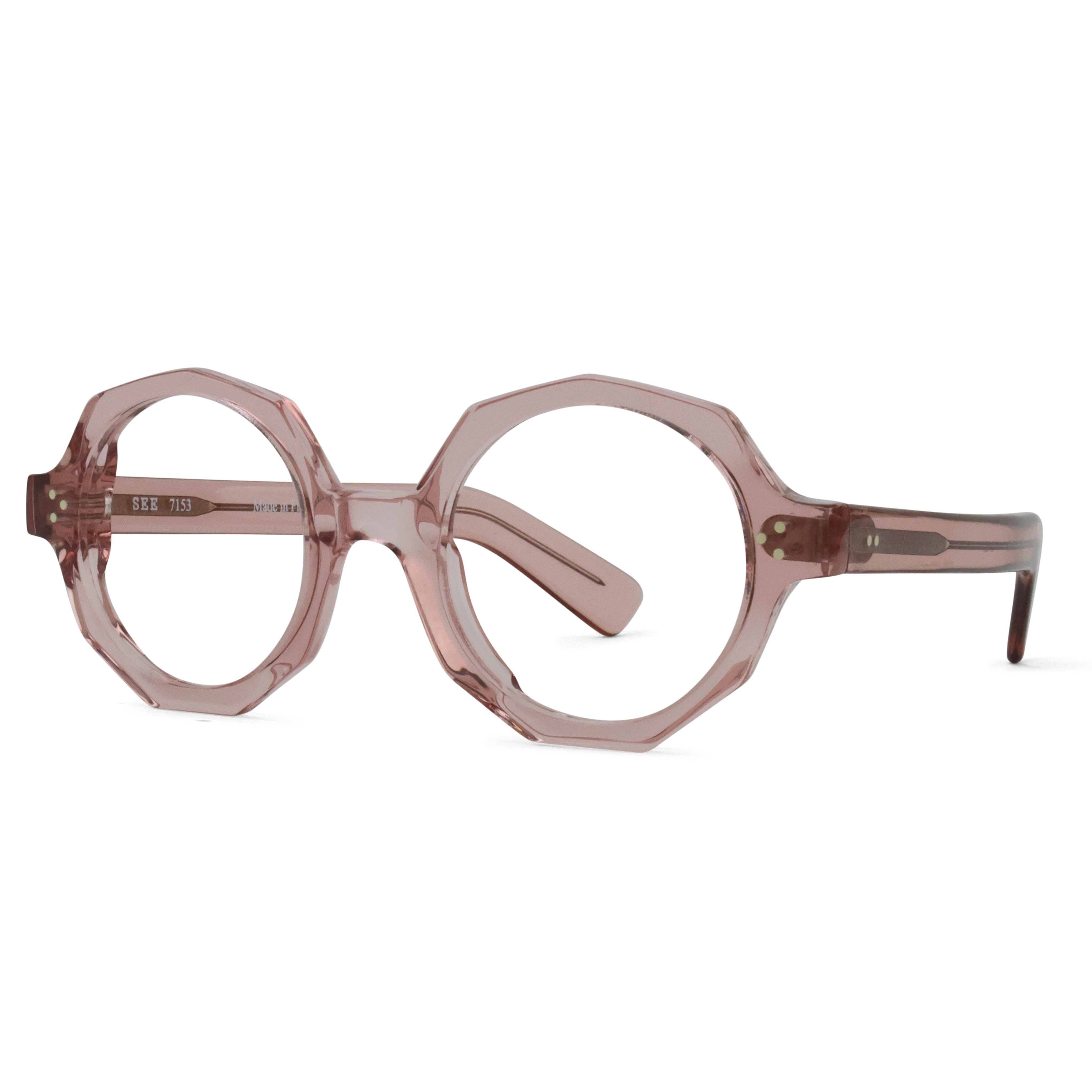 SEE 7153 is decked-out in geometric goodness, equipped with triple-rivet details and paddle temples to boot, all topped off with a springy color palette.