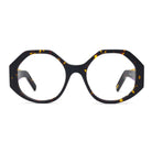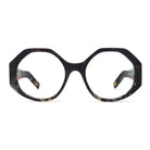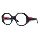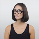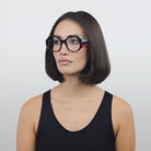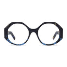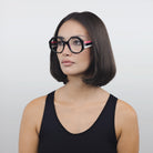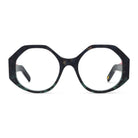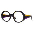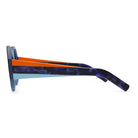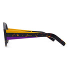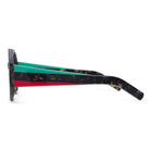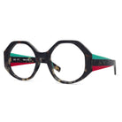 This Italian-made traffic-stopper takes a funky shape to the next level with colorful, striped temples, and acetate nose pads to match.