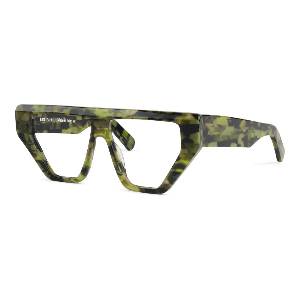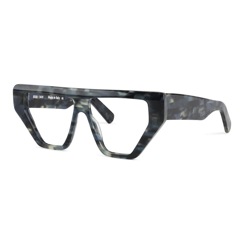 SEE 3419 is one-in-a-million (or one-in-seventy-five because that’s how many we made of each color). The fabulous jaw-dropping shape, chunky temples, and bevel details make for a total knockout frame available in three standout torts, plus a classic black option for you purists out there.