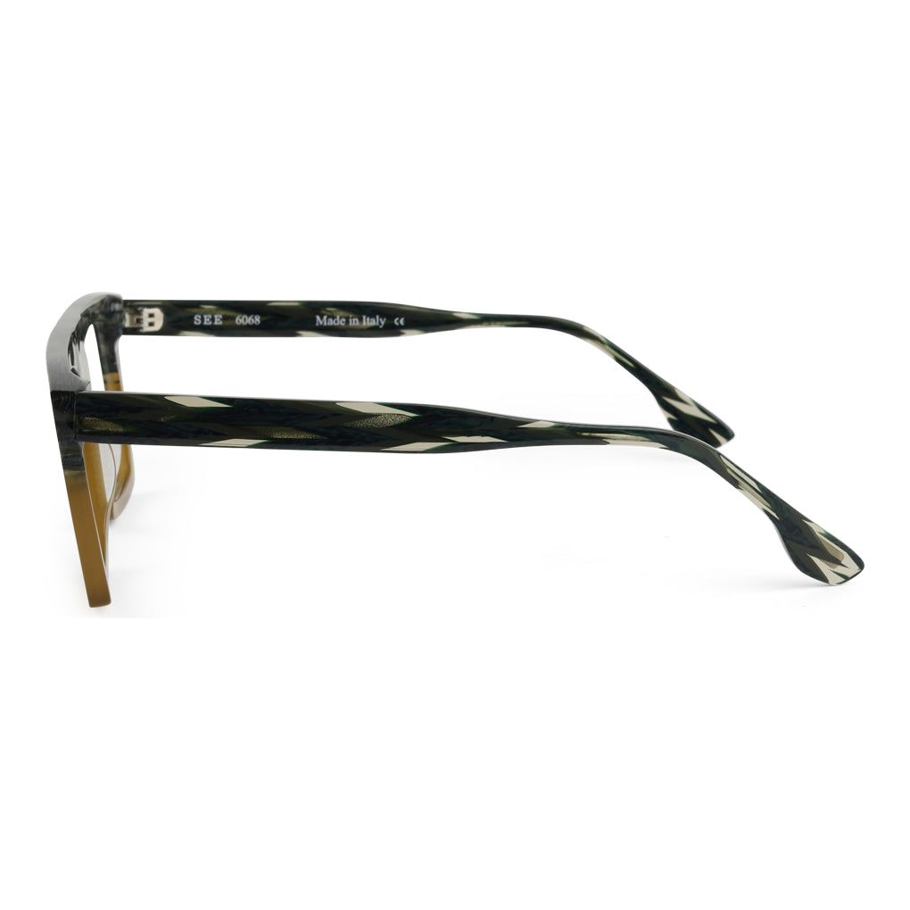 Nothing says “Sexy Specs” quite like funky color blocking and interesting shades of acetate. SEE 6068 has both. The retro-futuristic flat top shape boasts funky and fun colors and patterns that will make your other glasses totally jealous. Sorry, other glasses. This one’s hard to pass up!