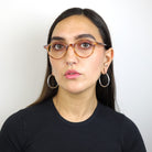 SEE 0725 is a sweet and petite round style, fresh outta Italy. The retro rivet details and artsy exposed core wire knock this one out of the park.