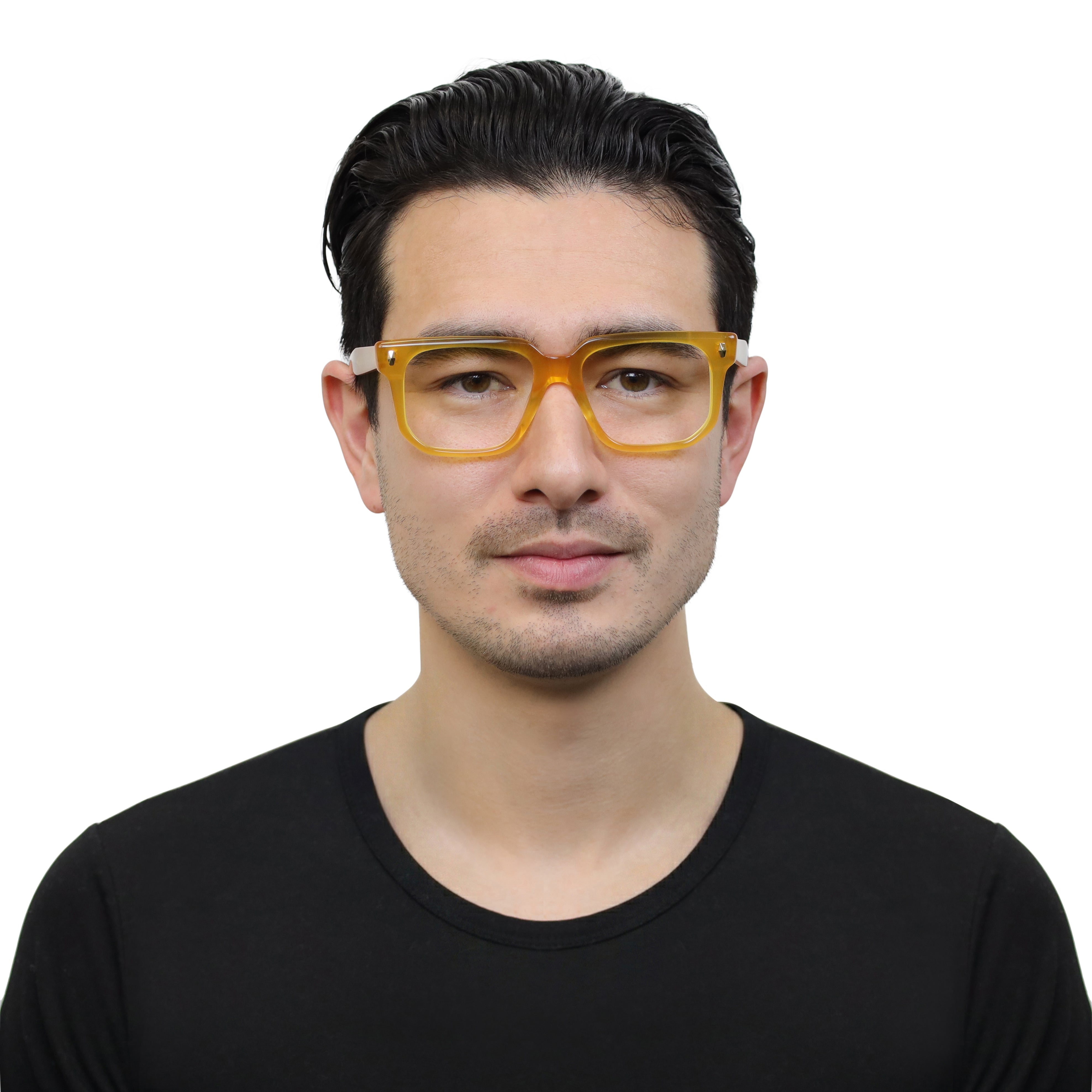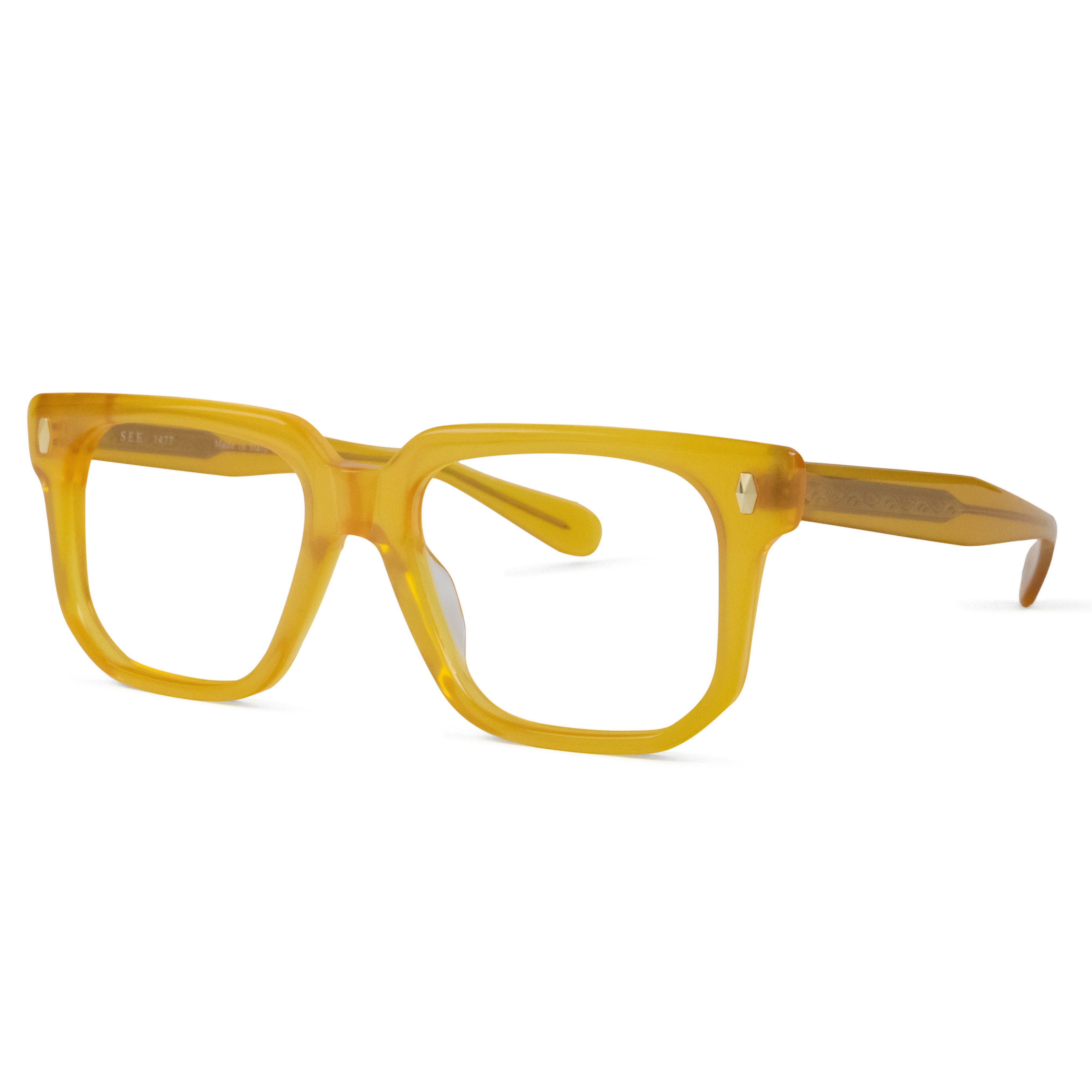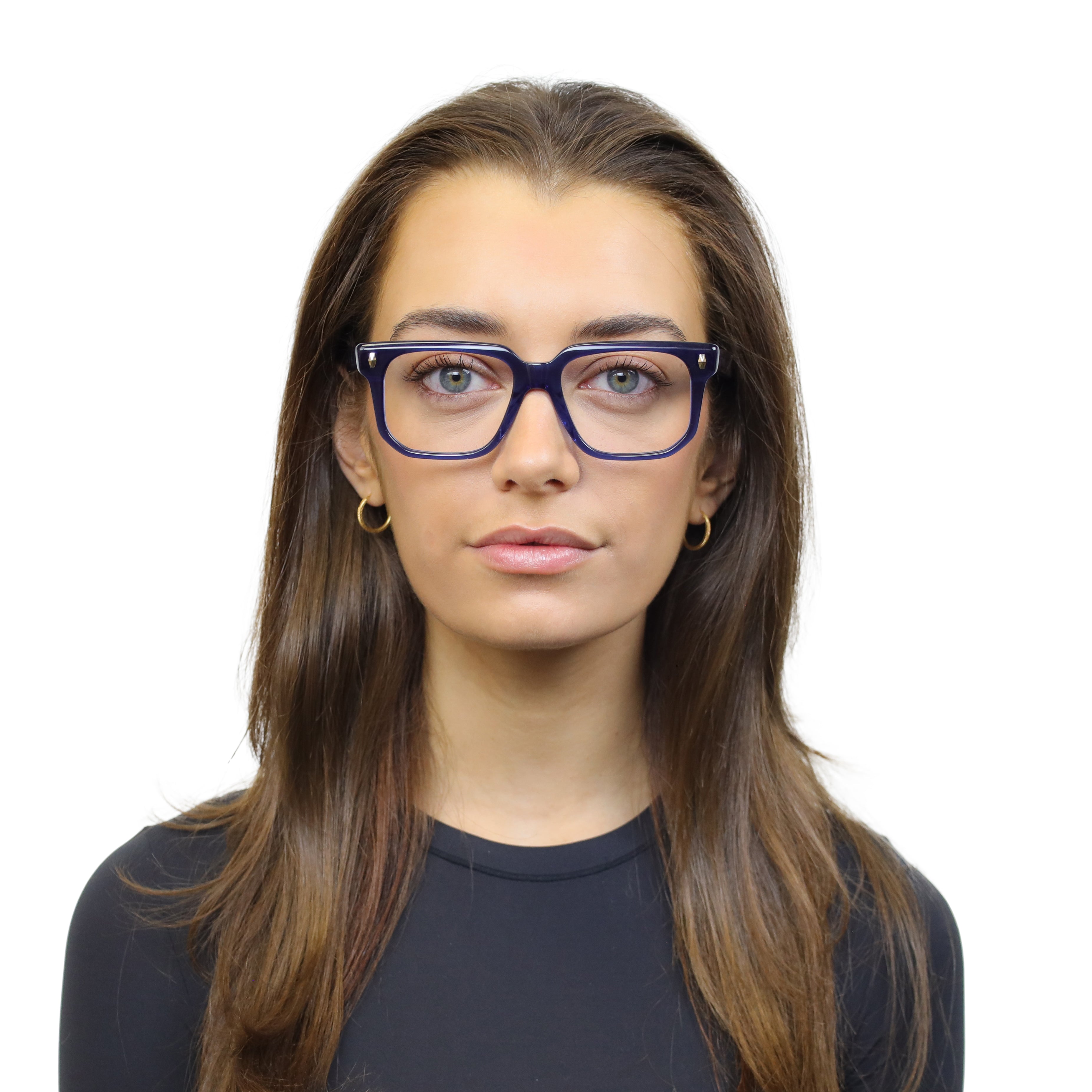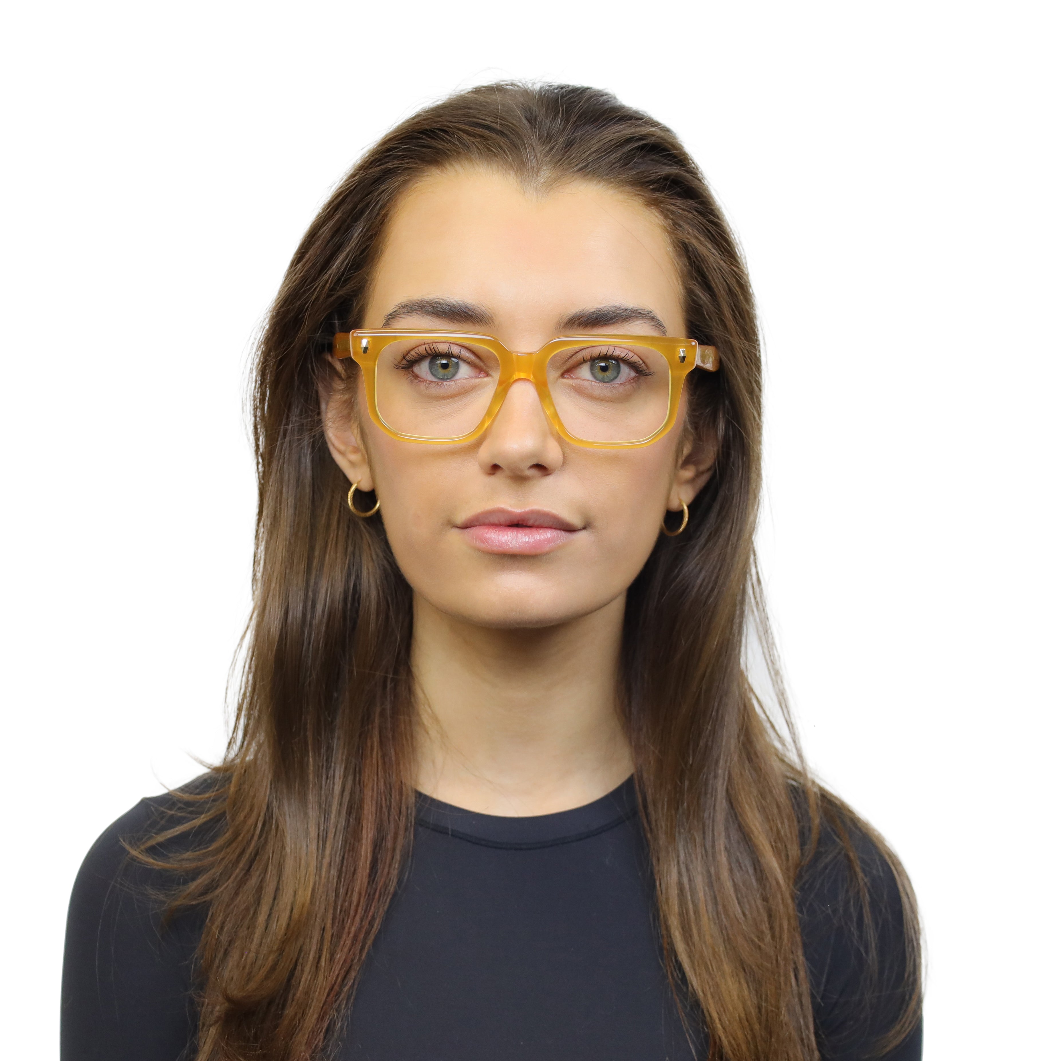 Classic at first glance, interesting up close. This square acetate frame pairs crisp lines with polished rivets and an angular lower eye wire for a look that’s subtle… but never boring. Effortless style with character.