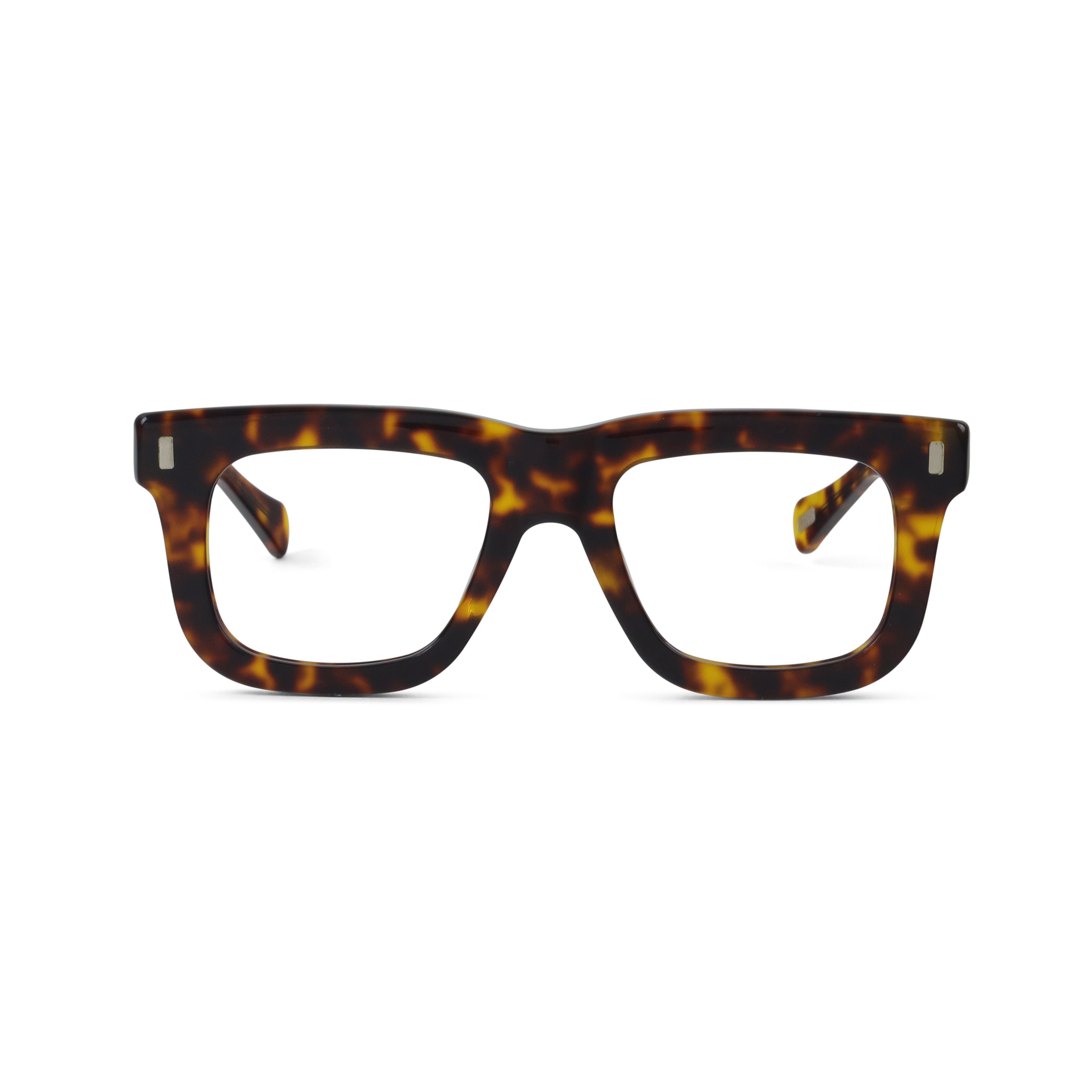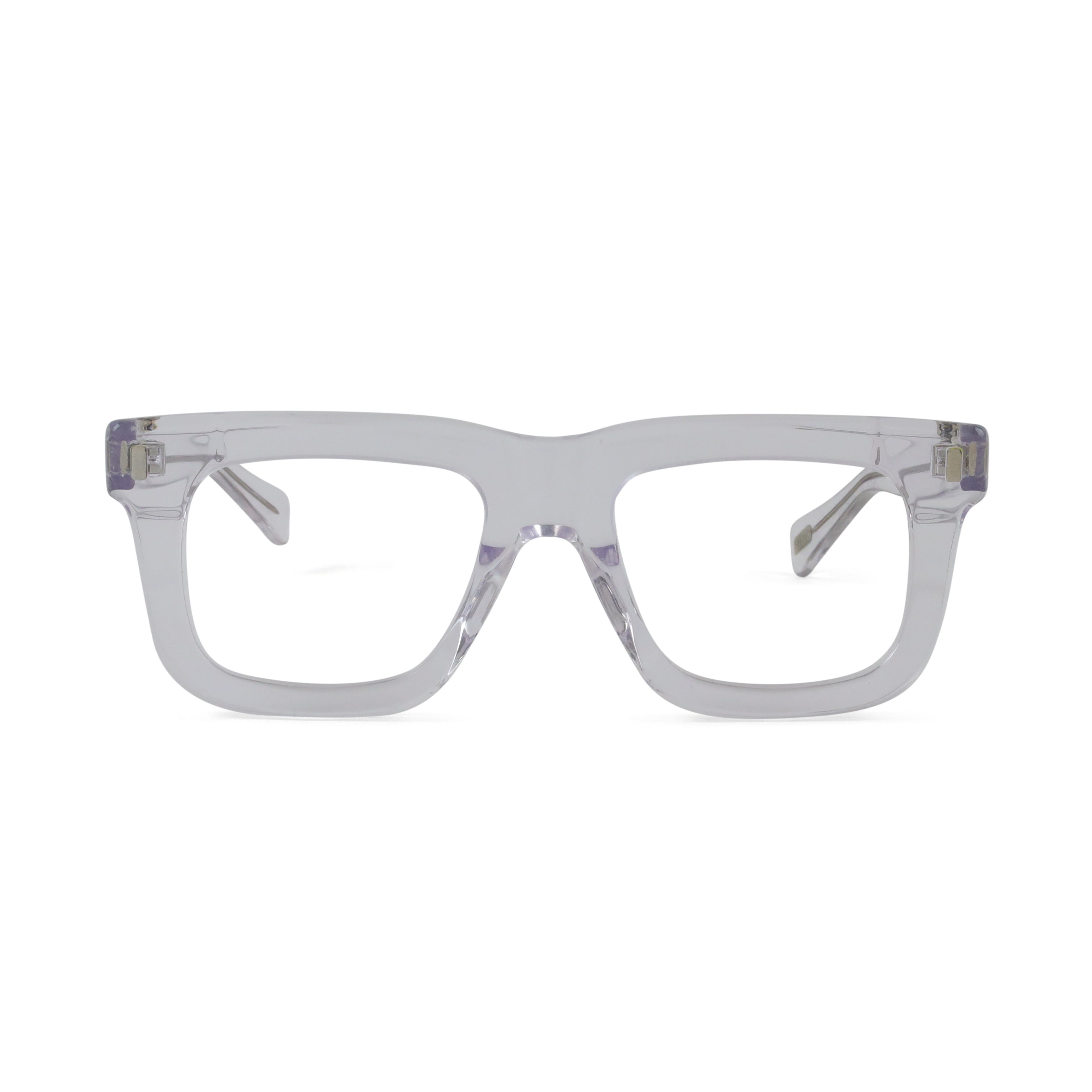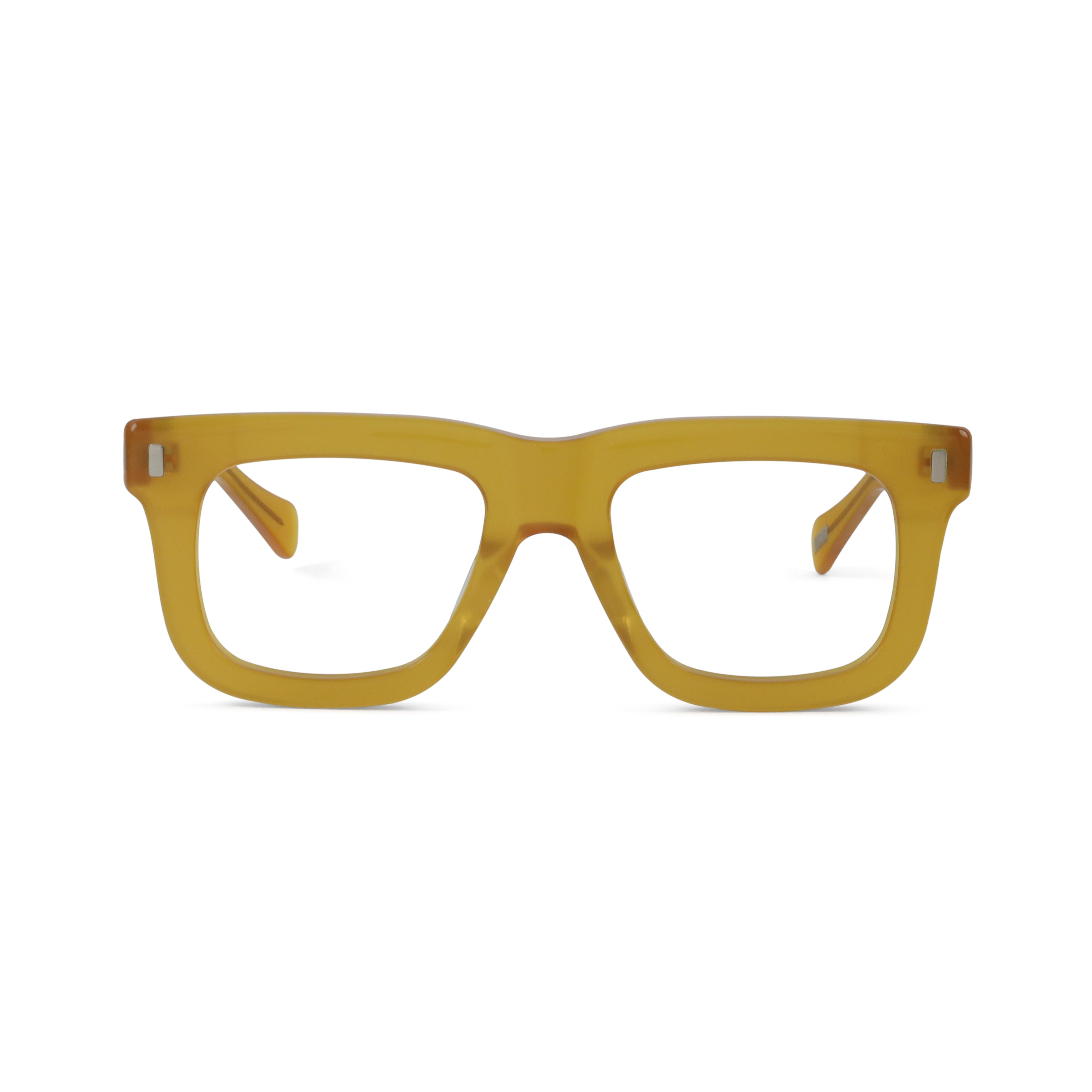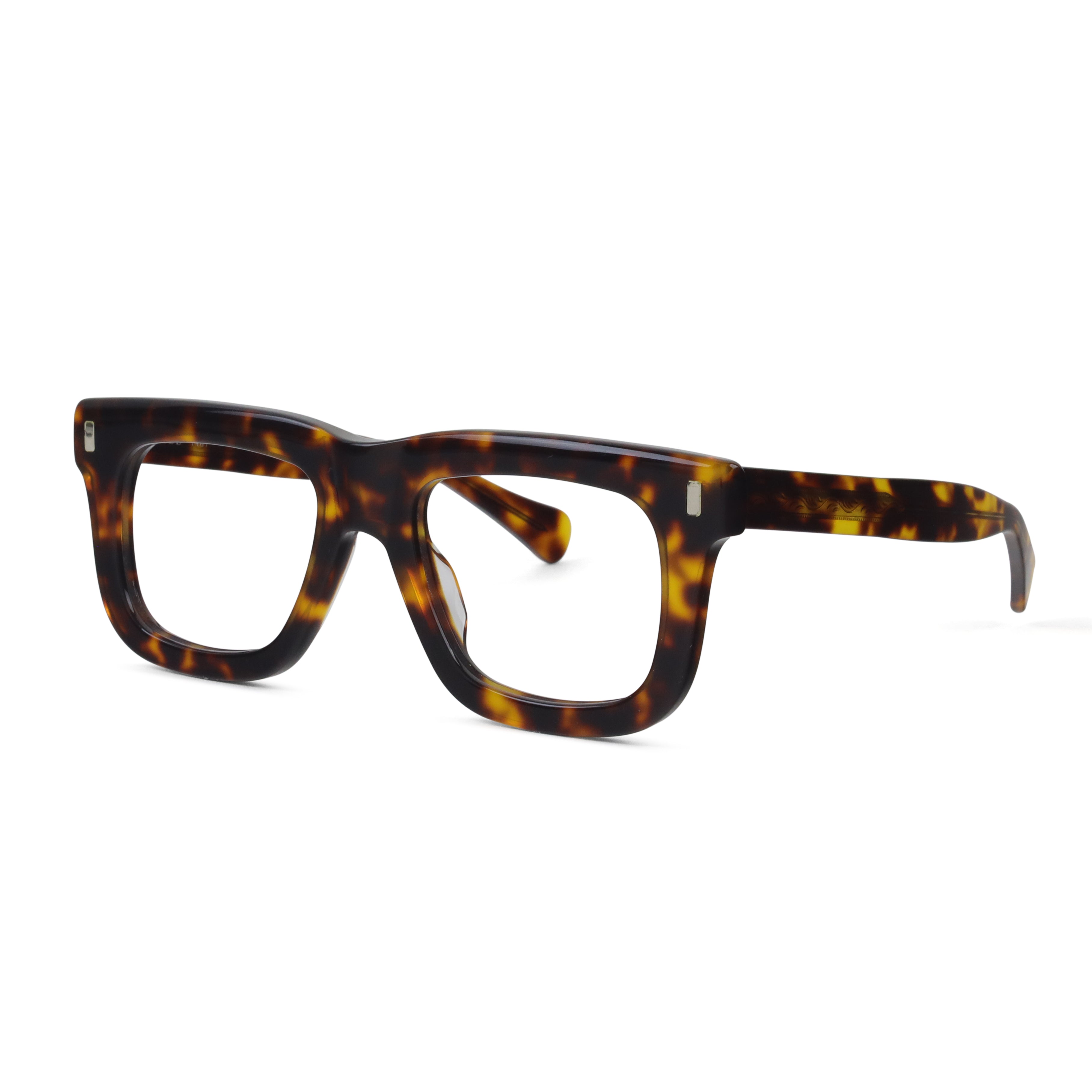 A bold flat-top that doesn’t blend in. The chunky acetate, exposed core wire, and vertical rivets give this frame a confident edge — equal parts vintage attitude and modern cool. If subtle isn’t your thing, this one speaks up for you.