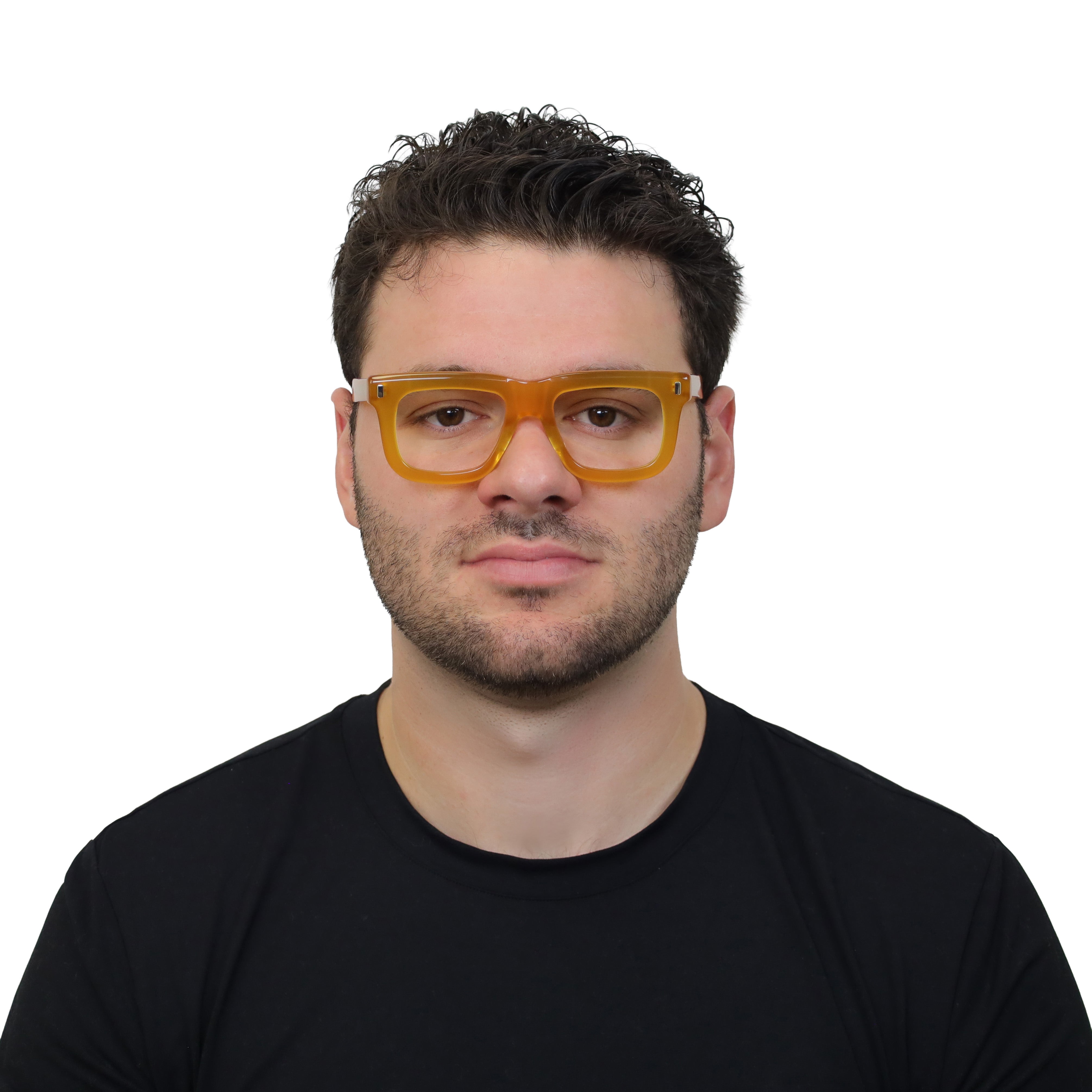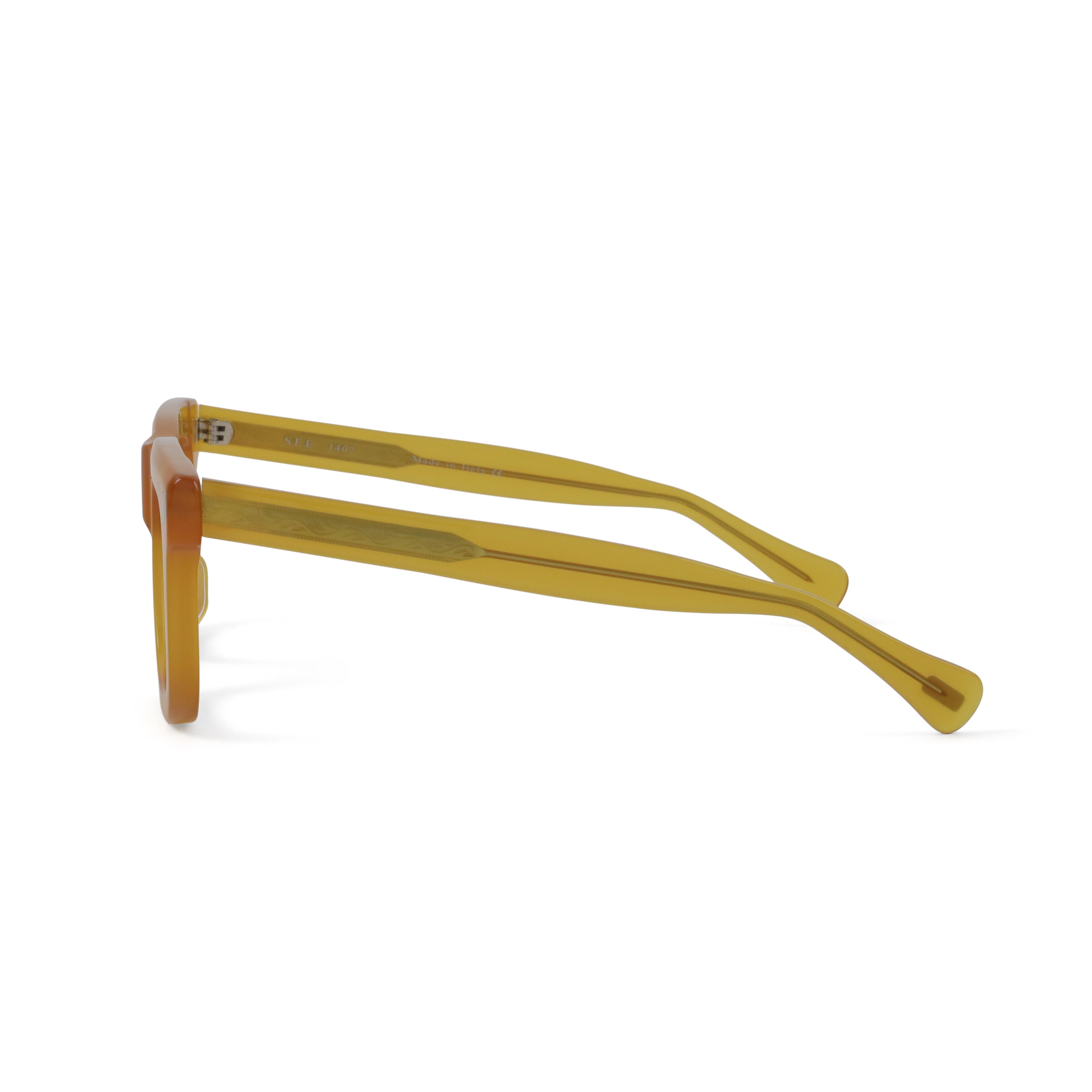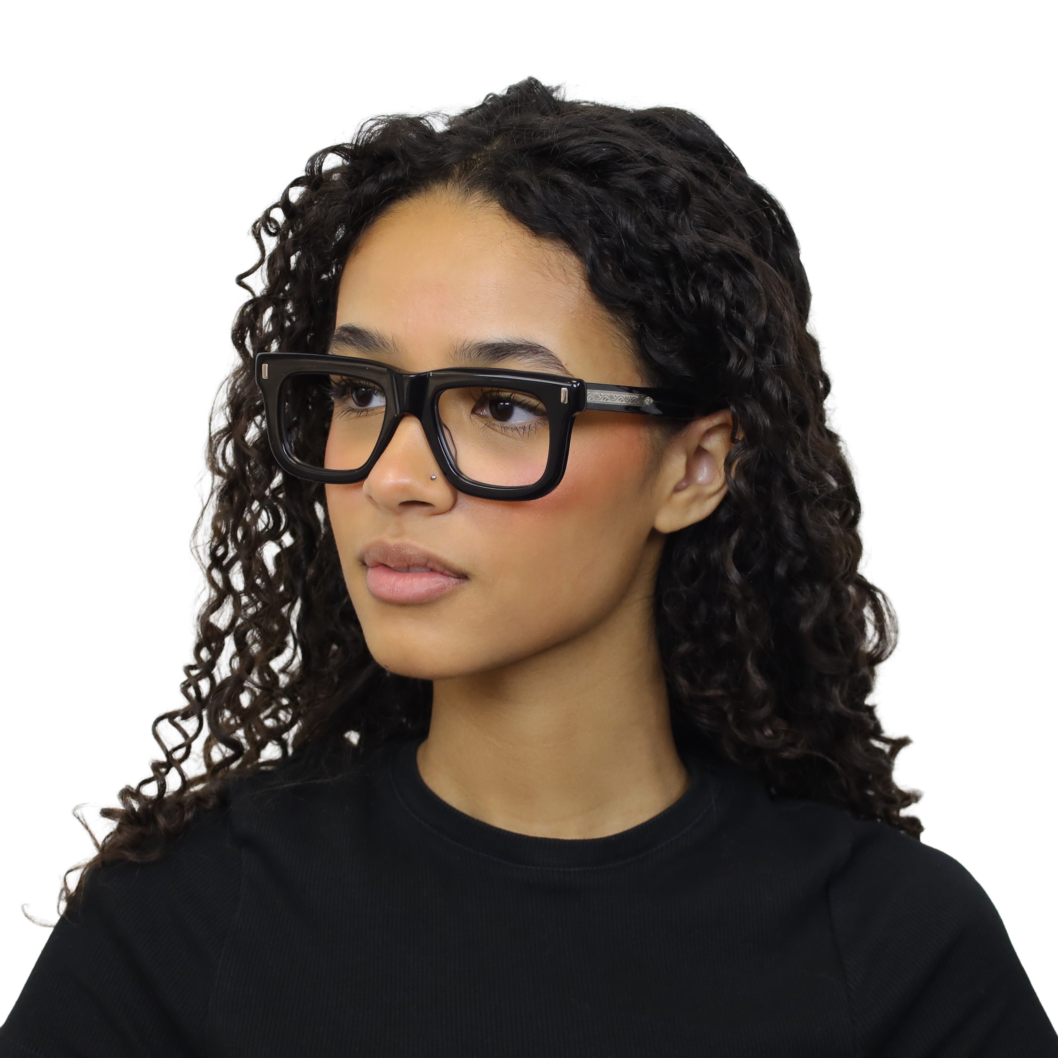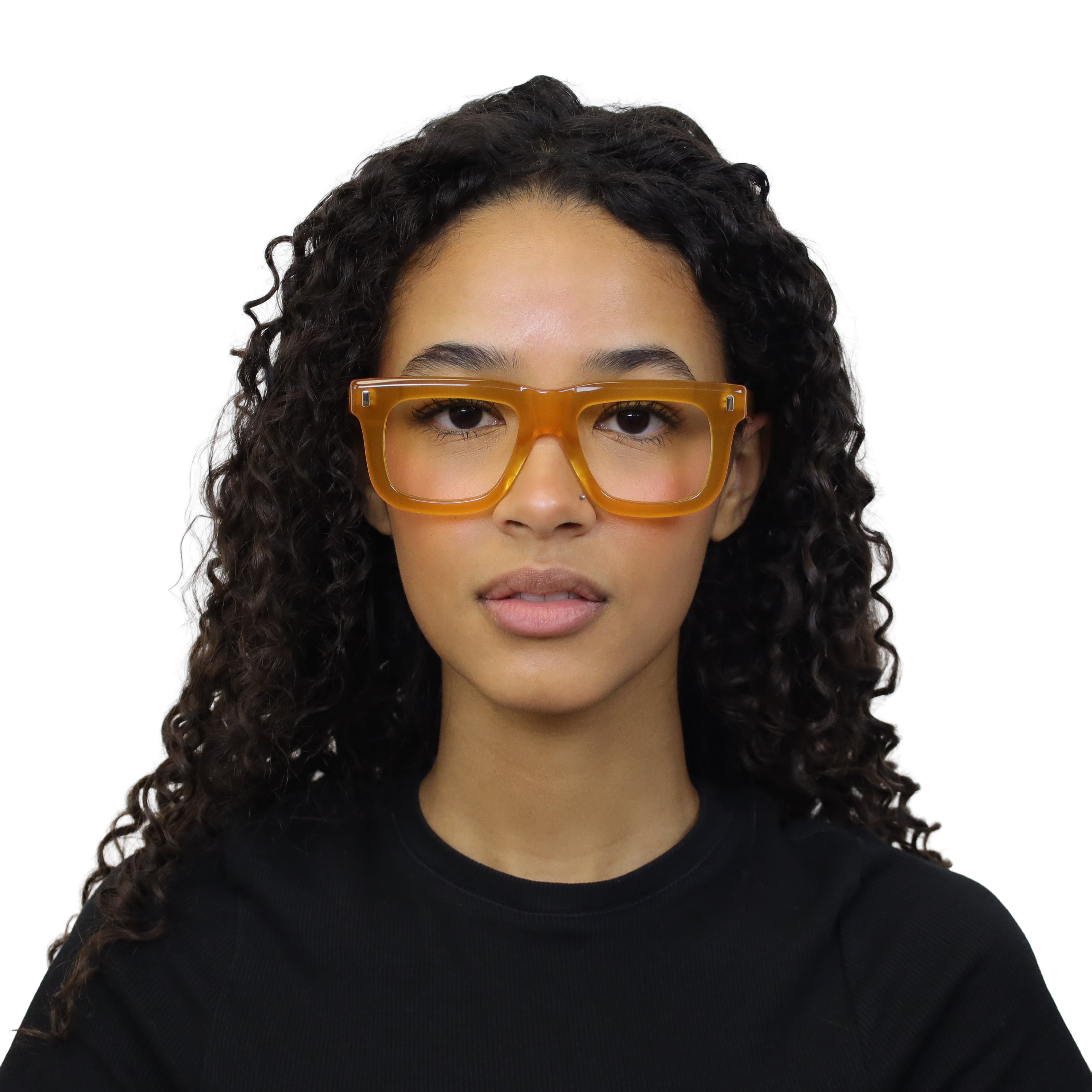 A bold flat-top that doesn’t blend in. The chunky acetate, exposed core wire, and vertical rivets give this frame a confident edge — equal parts vintage attitude and modern cool. If subtle isn’t your thing, this one speaks up for you.
