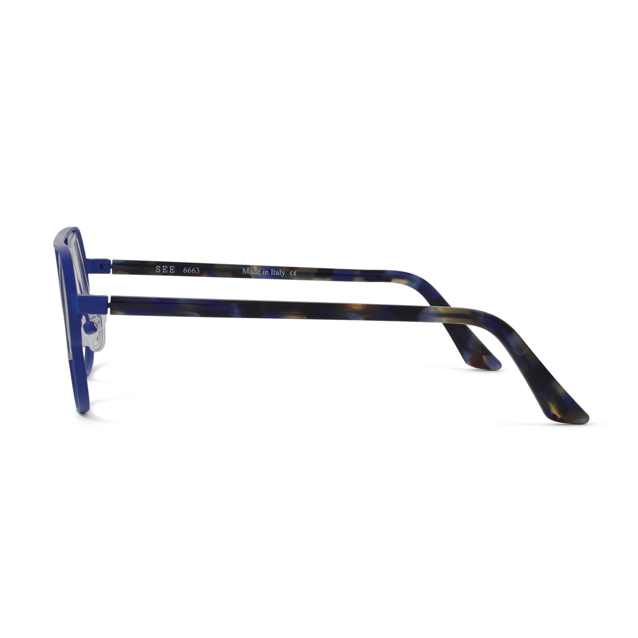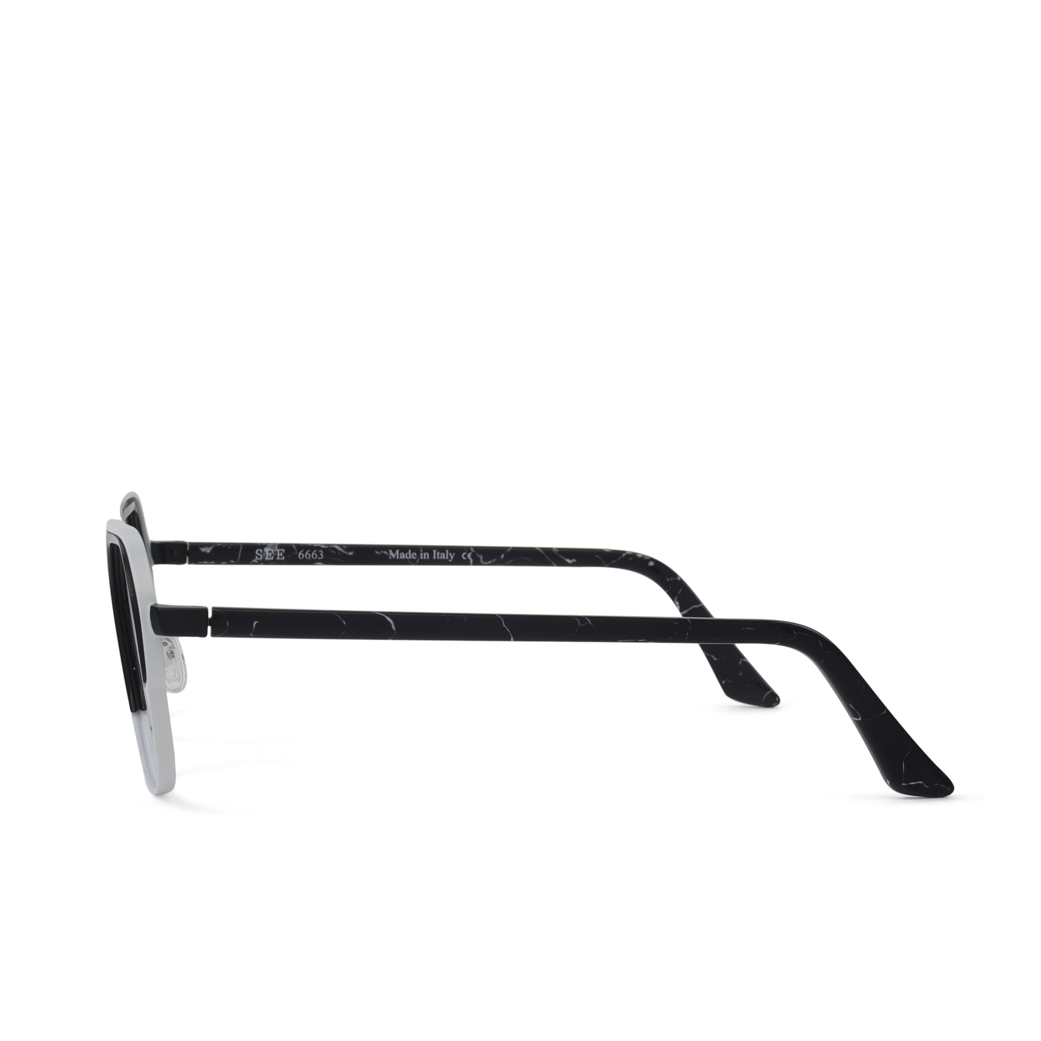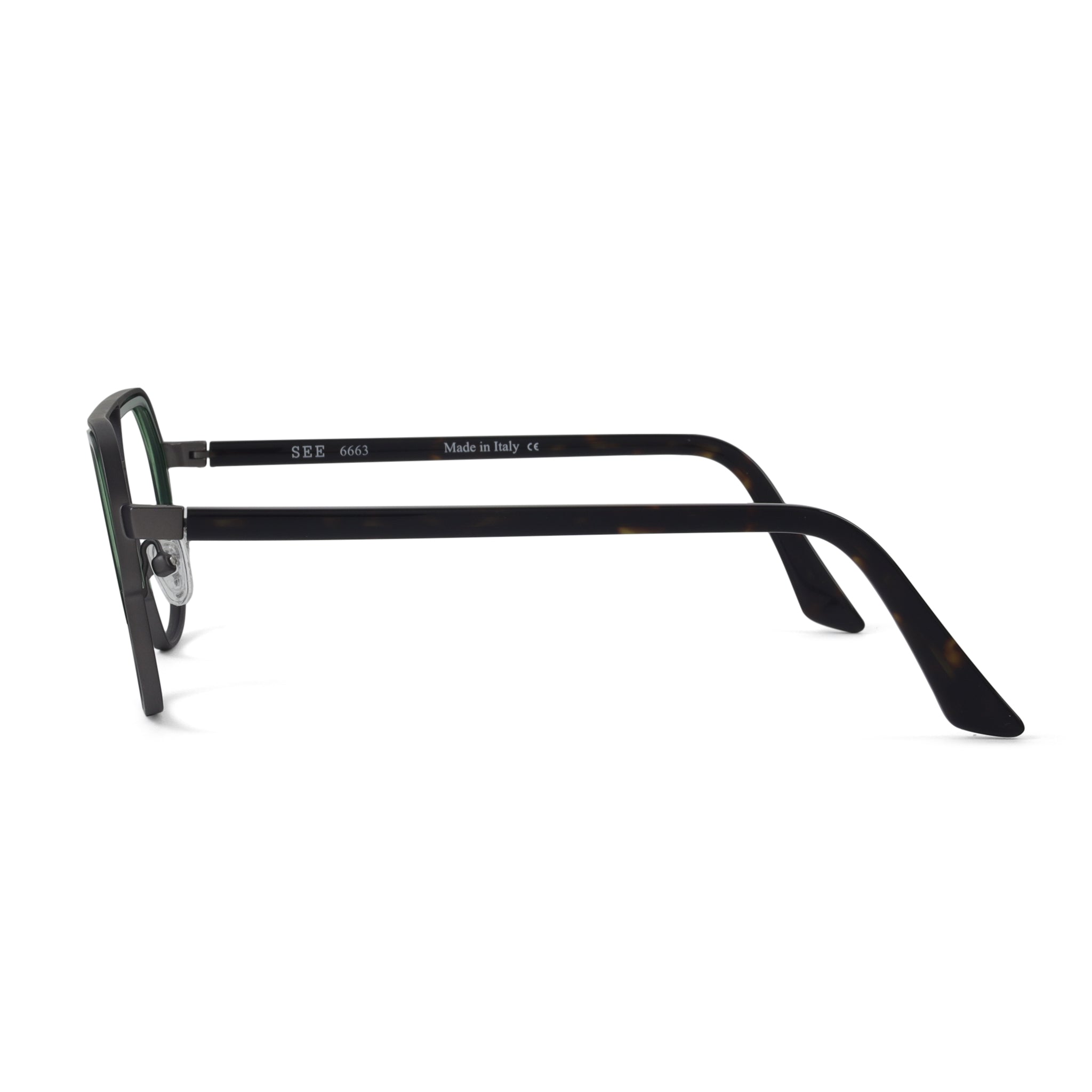 SEE 663 brings a modern, architectural edge to a mixed-material silhouette. Metal framing meets bold acetate inserts that are engineered directly into the lens — a unique construction detail that adds dimension without extra bulk. The result is a clean, sculptural frame with just the right amount of attitude. Strong lines, smart craftsmanship, unmistakably SEE. Available in 4 colors.