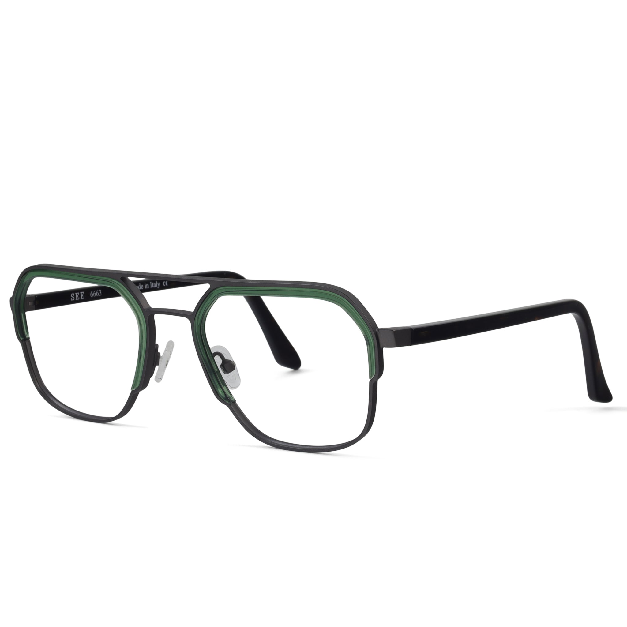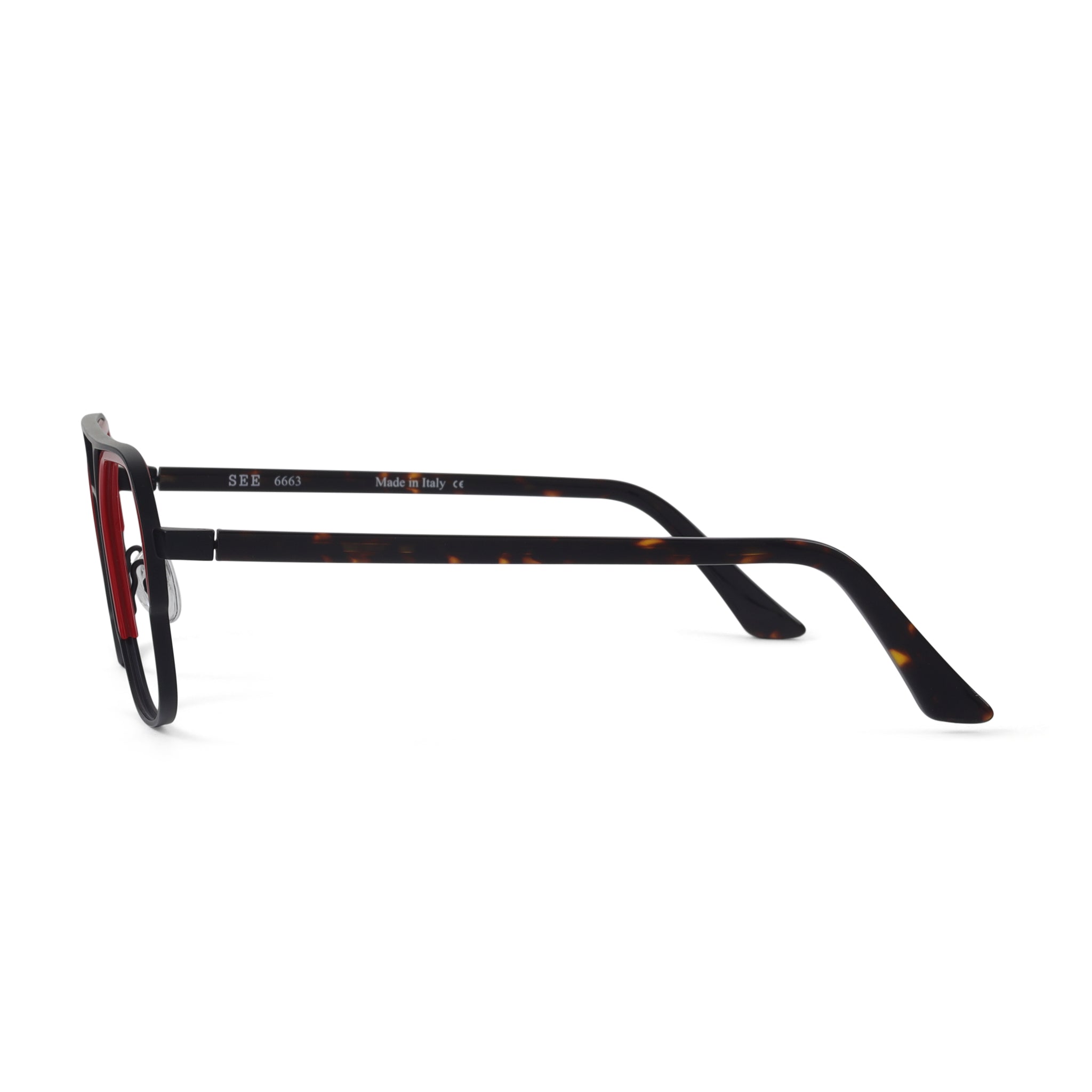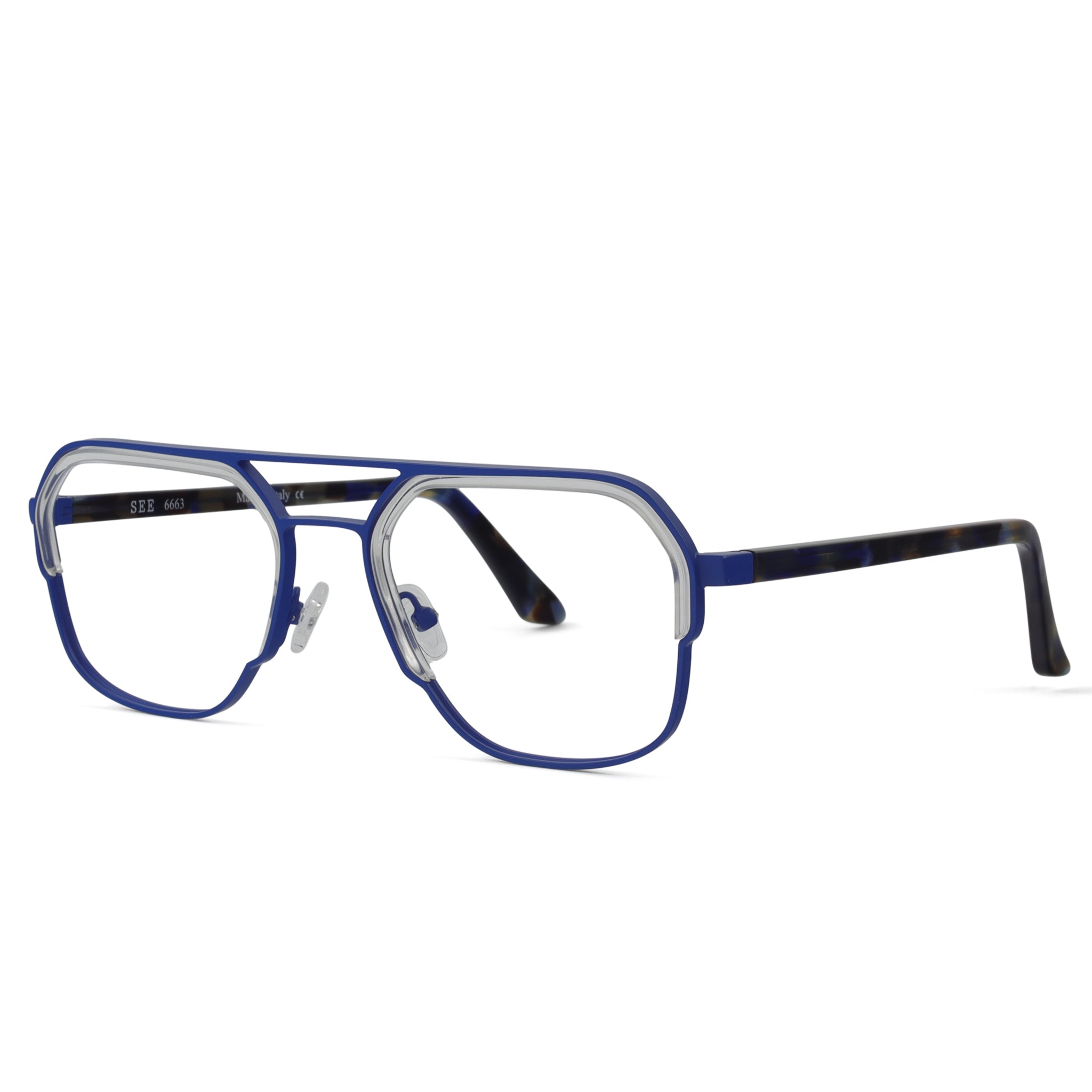 SEE 663 brings a modern, architectural edge to a mixed-material silhouette. Metal framing meets bold acetate inserts that are engineered directly into the lens — a unique construction detail that adds dimension without extra bulk. The result is a clean, sculptural frame with just the right amount of attitude. Strong lines, smart craftsmanship, unmistakably SEE. Available in 4 colors.
