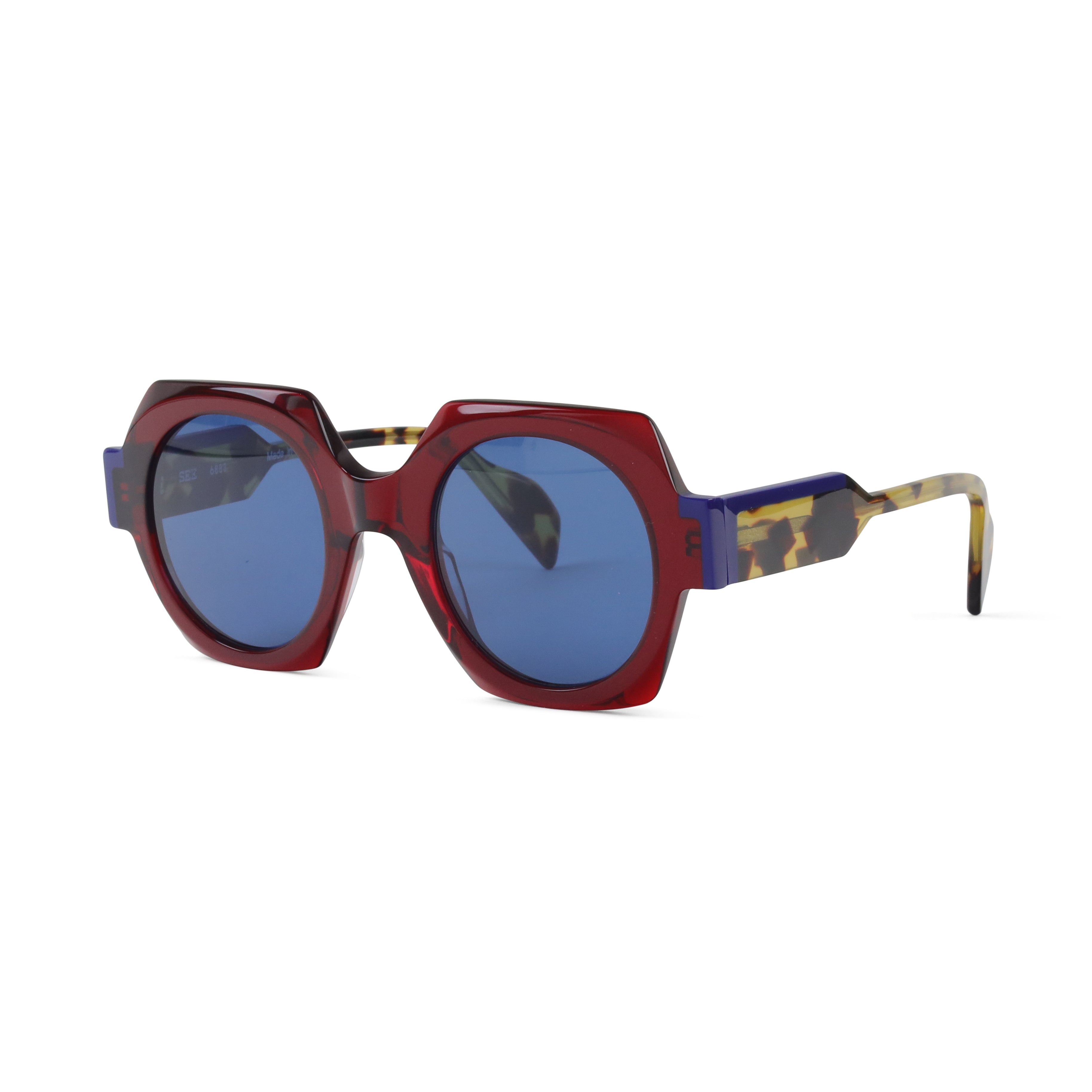 Bold shape. Playful color. SEE 6883 brings a geometric square frame to life with vibrant tinted lenses and standout two-tone temples. For someone who believes subtle is overrated.