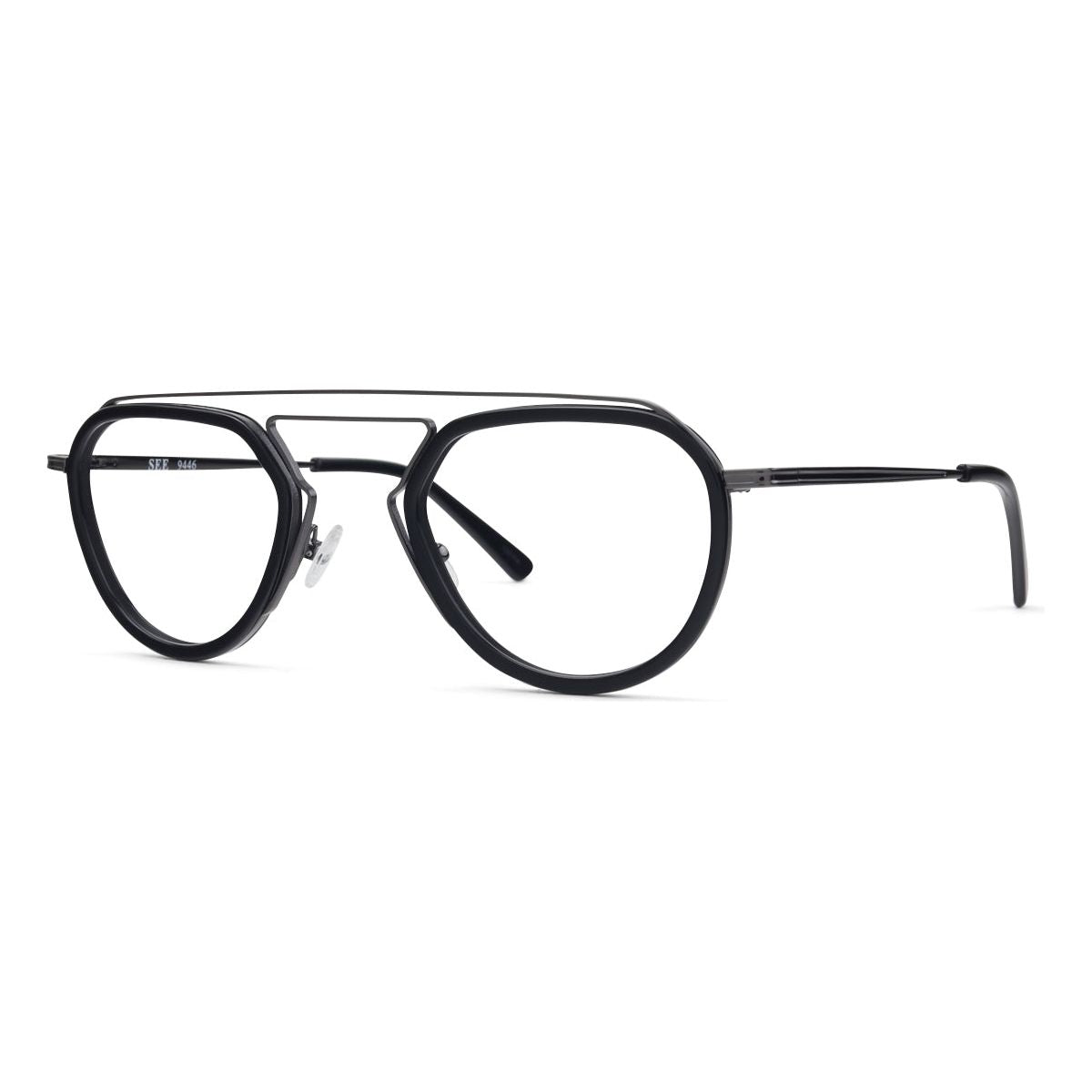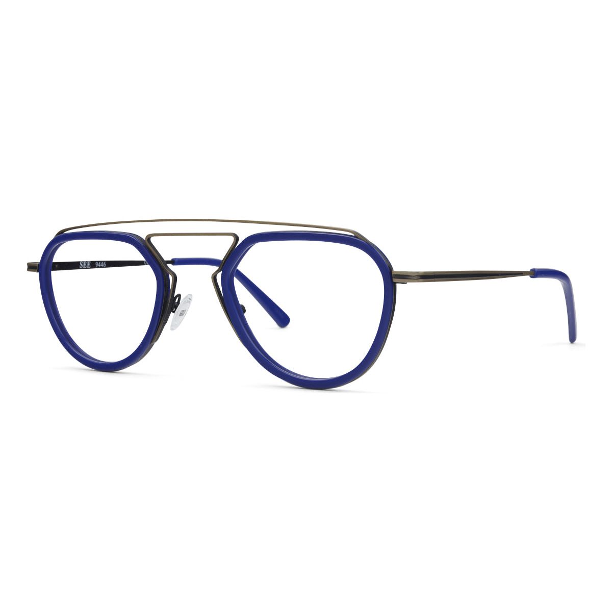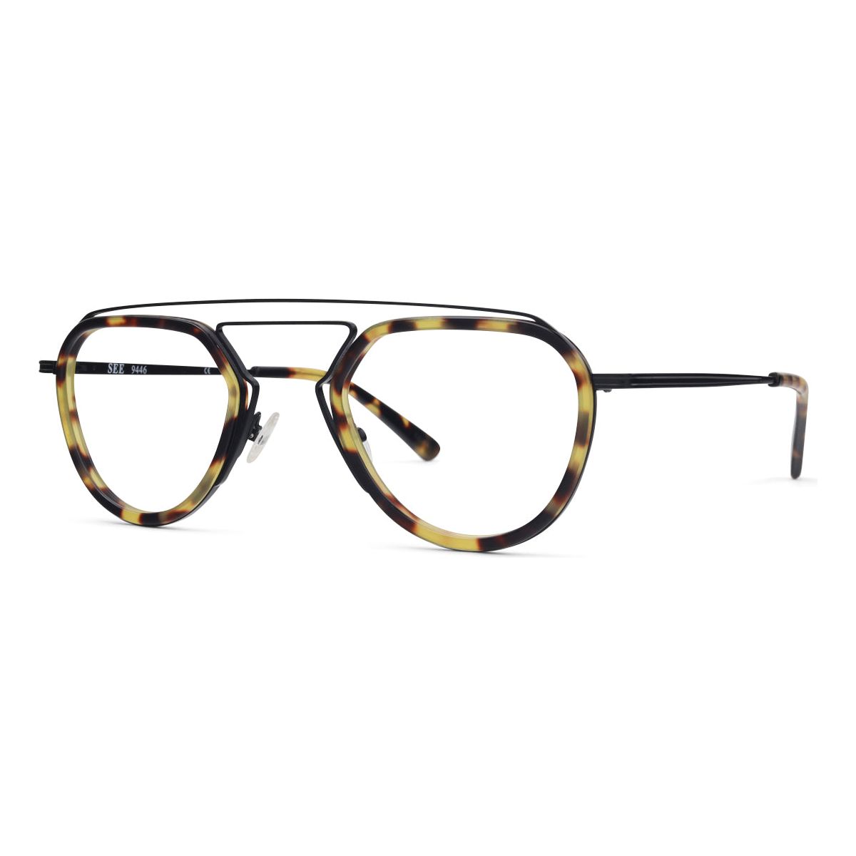 SEE 9446 is a funky and modern mixed-material frame, complete with floating acetate eye-rims and an interesting metal bridge. We topped this baby off with super-special 7-barrel hinges just to take it one step further. The devil’s in the details, am-I-right?