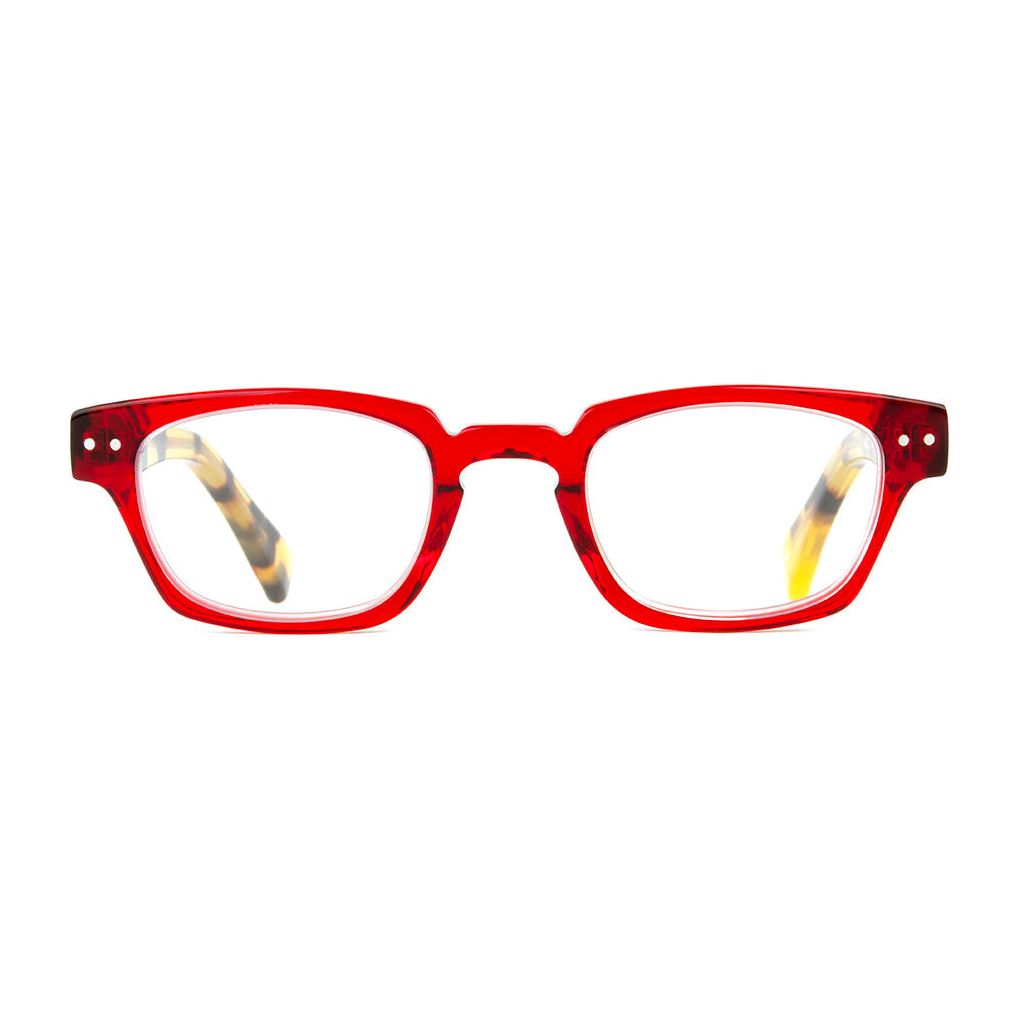 The George reader comes in an on-trend palette of translucents, featuring a keyhole bridge and uber-cool rivet details.